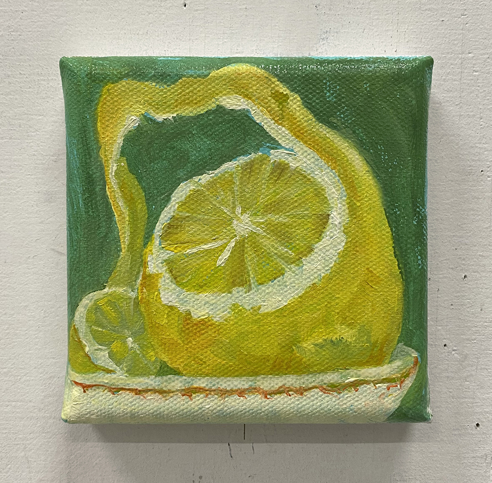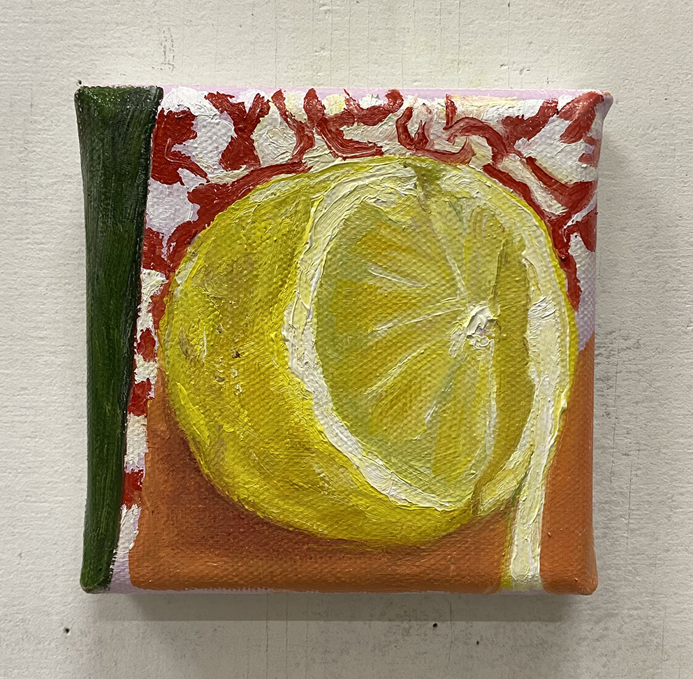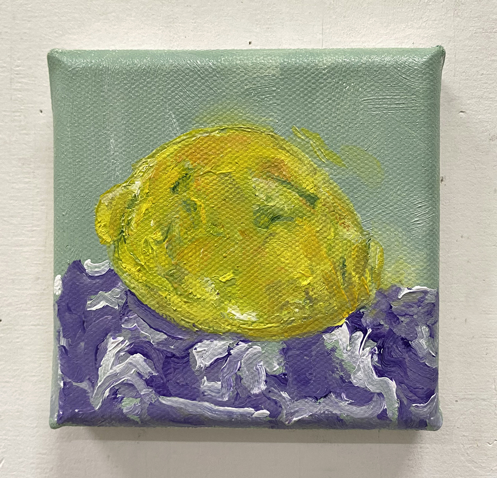 oefening in geel, 2024, olieverf op doek van 10x10 tot 100x100cm.